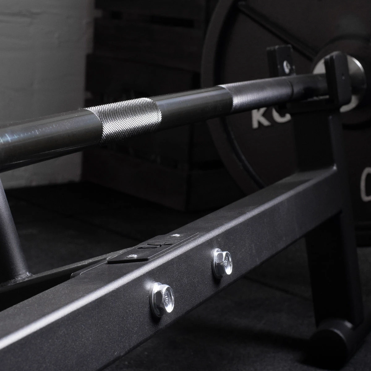 Der Doppel Deadlift Jack bietet eine einfache und sichere Lösung zum Be- und Entladen der Hantelstange. So kann auf eine simple Art die Stange auf beiden Seiten angebhoben werden, wodurch man den Rücken nicht belasten muss.