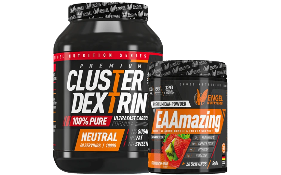 Unser Topseller EAAmazing® clever kombiniert mit dem Super-Kohlenhydrat Cluster Dextrin®.