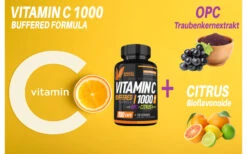 Engel Nutrition Vitamin C 1000 liefert zu diesem Zwecke eine optimale Kombination aus Vitamin C und den Antioxidantien OPC aus Traubenkernextrakt und Citrus Bioflavonoiden.