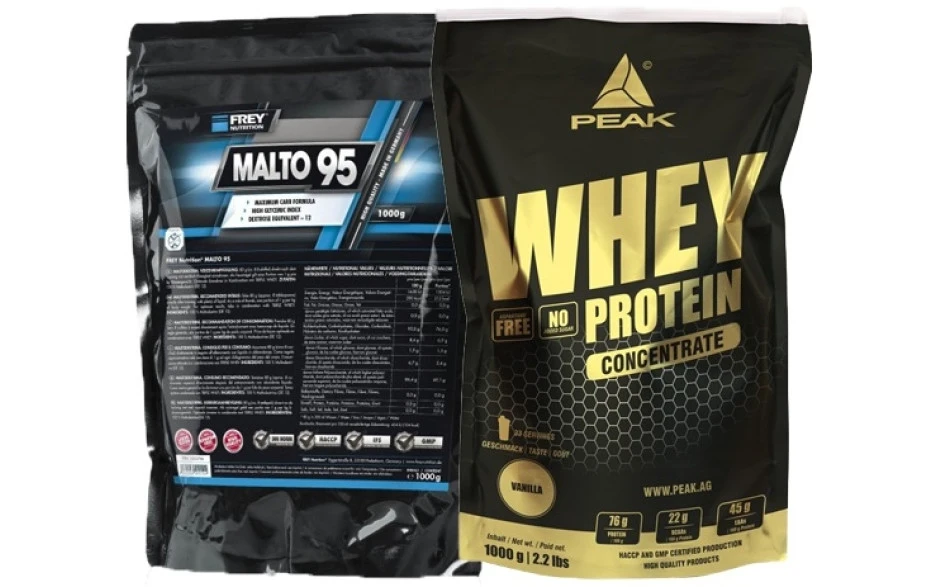 Der Beginner-Stack besteht aus dem beliebten Peak Whey Selection und Frey-Nutrition Malto 95!