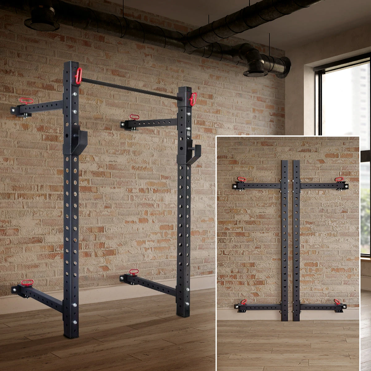 Trainiere hart UND smart. Aber was tun, wenn fehlender Platz dich beim Training einschränkt? Wenn nur wenig Platz da ist, man keine feste Station mit einem großen Rack oder Cage zu stellen möchte oder man einfach grundlegend flexibel sein will in der Nutzung des Raumes für z. B. Veranstaltungen, ist ein einklappbares Wand-Rack die beste Lösung.