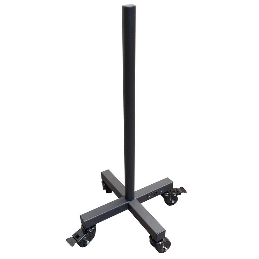 Gewichtsscheiben lassen sich auf dieser Ablage dank der Räder bequem transportieren.